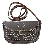 - DISEÑO: Bolso rociero en piel marrón Chocolate. Tiene cabida para llevar móvil, pañuelos, neceser, llaves, etc. Tiene un diseño bordado en color blanco que resalta y le da un toque fino y elegante. Solapa en piel y Cierre con broche