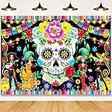 - CREATIVA DECORACIÓN PARA FIESTA DE HALLOWEEN: Nuestra pancarta de fondo combina elementos clásicos de calaveras de Halloween con el tema mexicano del Día de los Muertos, con colores brillantes y personajes vivos para crear una alegre atmósfera de fiesta de Halloween