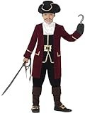 - Conviértete en un temido pirata con el disfraz Captain Corsair. Fabricado en poliéster, combina los audaces colores rojo y negro para un look impactante en tus fiestas de disfraces.