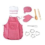 - 【Delantal Infantil LEADSTAR】 Viene con 30 piezas en un juego para satisfacer todas las necesidades de cocción y horneado de su pequeño chef: delantal, gorro de chef, guante de horno, tapete resistente al calor, rodillo, cuchara de madera, batidora de mano, cepillo de aceite, raspador de crema, cuchara medidora, Molde de silicona para cupcakes y cortadores de galletas.
