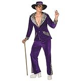 - Traje completo: conviértete con este disfraz de chulo en un verdadero gángster de hip-hop de los años 80 y 90. El juego incluye 1 gafas de sol, 1 cadena de dólar, 1 pulsera de oro, 2 anillos de dólares y 3 anillos chapados en oro de la suerte de Kanji para un look perfecto de pin.
