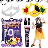 - 🎨 pinturas cara para niños creativo Halloween: todo lo necesario para crear looks glamurosos en un set de maquillaje infantil, 1 maquillaje acuoso de colores, 2 lápices de maquillaje de precisión para delinear, 5 plantillas y 2 polvos brillantes de colores para un acabado resplandeciente.