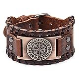 Pulsera vikinga marrón - Pulsera ajustable con amuleto nórdico de la brújula Vegvisir, joyería celta pagana con talismán, 18 to 22.5cm, Cuero