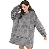 AUTUCAU Sudaderas con Capucha Sherpa Extragrandes, Manta Vestible Acogedora Suave y Cálida con Bolsillo Gigante, Talla Única para Hombres Mujeres Adultos Adolescentes, gris, Talla única