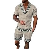 - Conjunto de camiseta y pantalones cortos para hombre, parte superior elástica con diseño de cuello redondo, pantalones cortos deportivos con dos bolsillos laterales, cordón y cintura elástica para un ajuste cómodo.
