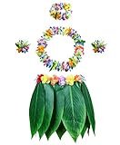 - Paquete valioso: 1 falda de hoja de Hula 4 x juego de leis de flores hawaianas (1 x collar, 1 x diadema de hibisco, 2 x brazaletes de hibisco) en el paquete.